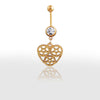 Piercing nombril en acier de couleur or pendentif cœur steampunk