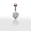 Piercing nombril en acier or rose serti d'un strass zircon en forme de cœur