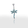 Piercing nombril libellule en acier sertie de strass zirconium bleus