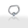 Piercing téton demi-anneau en titane serti d'un strass bleu