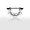 Piercing téton demi-cercle serti de strass zirconium bleu