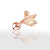 Ce piercing original est composé en acier inoxydable ionisé or rose. À l'image d'une petite planète, le bijou se compose d'une opale de synthèse et de deux strass zirconium.